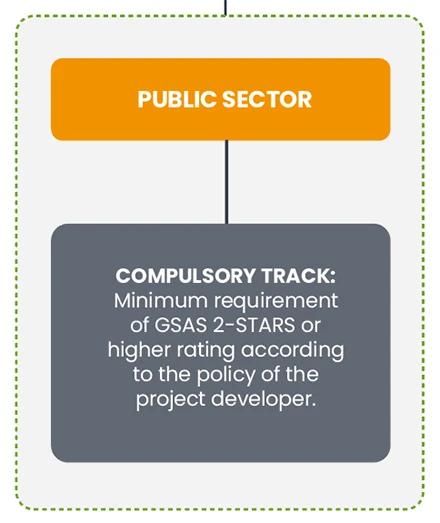 All public sector projects shall achieve a minimum of GSAS rating of 2-STAR following performance -based approach or higher rating according to the policy of the project developer.